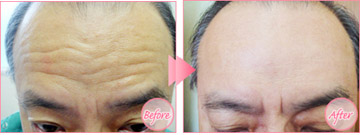 ボトックスとは米国のアラガン社の登録商標で、成分は主にポツリヌス菌という細菌から産生されるボツリヌストキシンというタンパク質の一種です。このボツリヌストキシンを局所に注入することにより、筋肉の動きを持続的に麻痺させる効果があります。ボトックスは美容先進国アメリカでFDA(日本の厚生労働省にあたる)に正式に認可された薬品で、十数年前から美容医療に使用され、現在でも非常に人気の高い薬剤です。筋肉の動きを麻痺させる効果を利用し、従来はメスを使用した手術でなければ改善できなかった、お顔の筋肉の動きによってできてしまう表情ジワの除去にも高い効果を発揮します。また、アレルギーなどの心配もない安全な医薬品であり、どなたにも安心してご利用頂けます。主にシワ治療として大変ポピュラーな診療です。このような美容外科的な使い方であれば、注射をした部分にのみ効果が現れ、副作用や他の箇所への影響などの心配は全くありません。効果はいずれも注入から3~4日後より現れます。ボトックスは、年齢によるたるみでできたシワではなく、額や眉間、目尻など、長年の表情グセのために刻み込まれてしまったシワに素晴らしい効果を発揮します。表情グセが頻繁におこる表情筋に微量を注射することでその筋肉のみを弛緩させしわを寄せつけなくします。